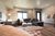 - Balcony overlooking a two-story community space with floor-to-ceiling fireplace